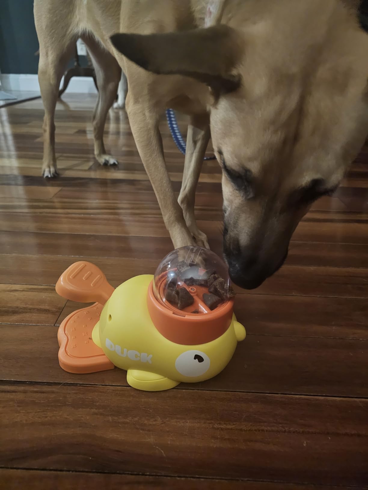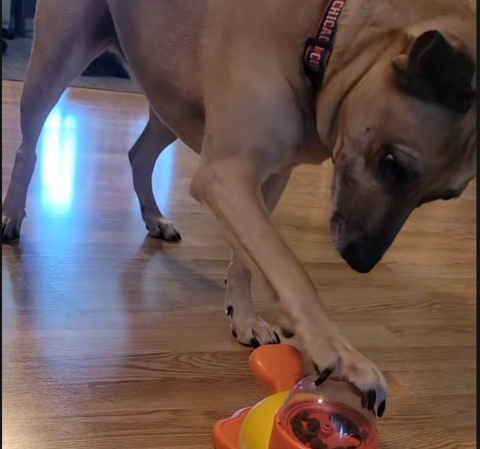My pup figured it out in minutes and now taps the duck all day for treats. Keeps him busy AND happy!